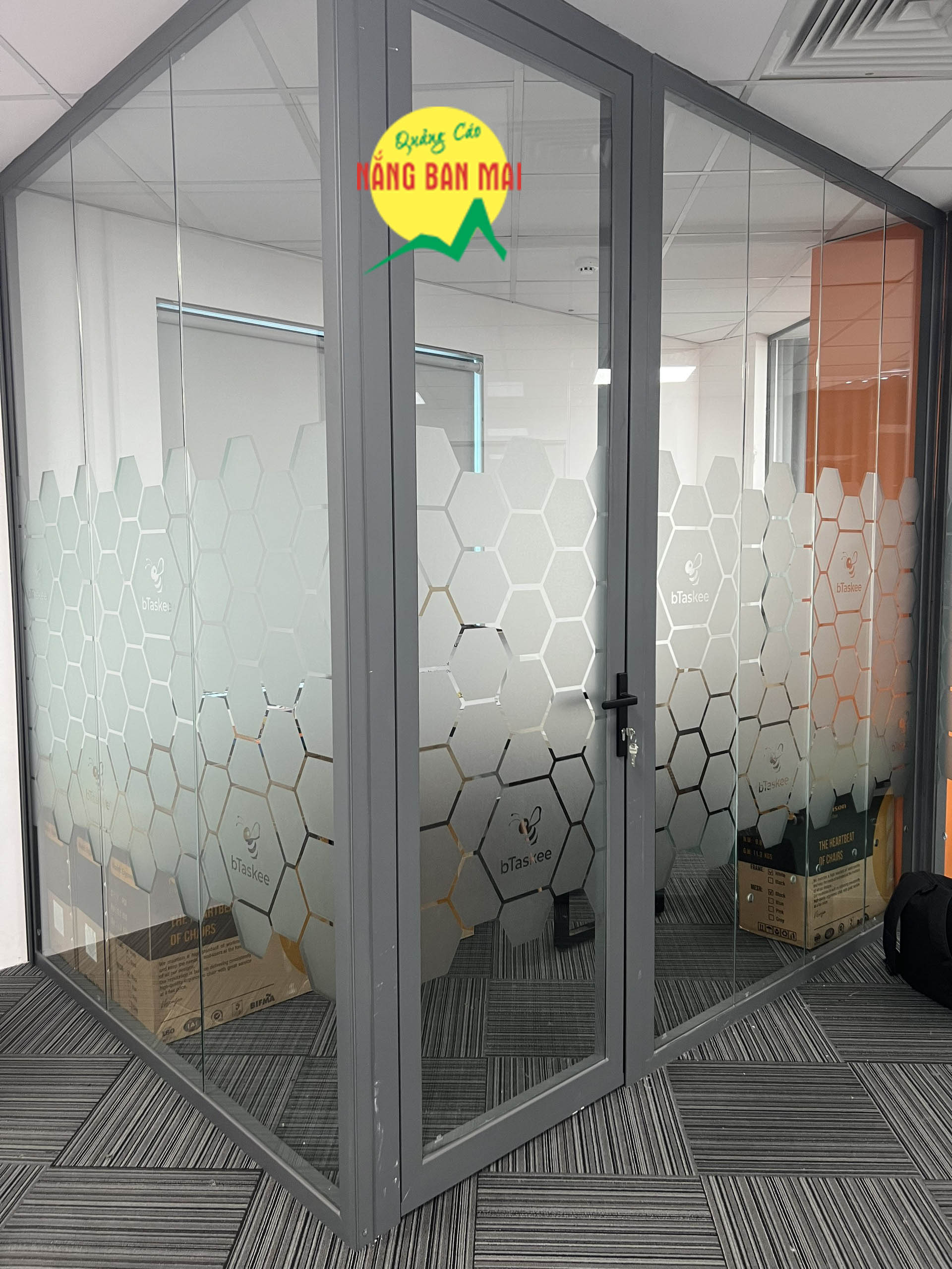 Dán decal kính mờ tổ ong